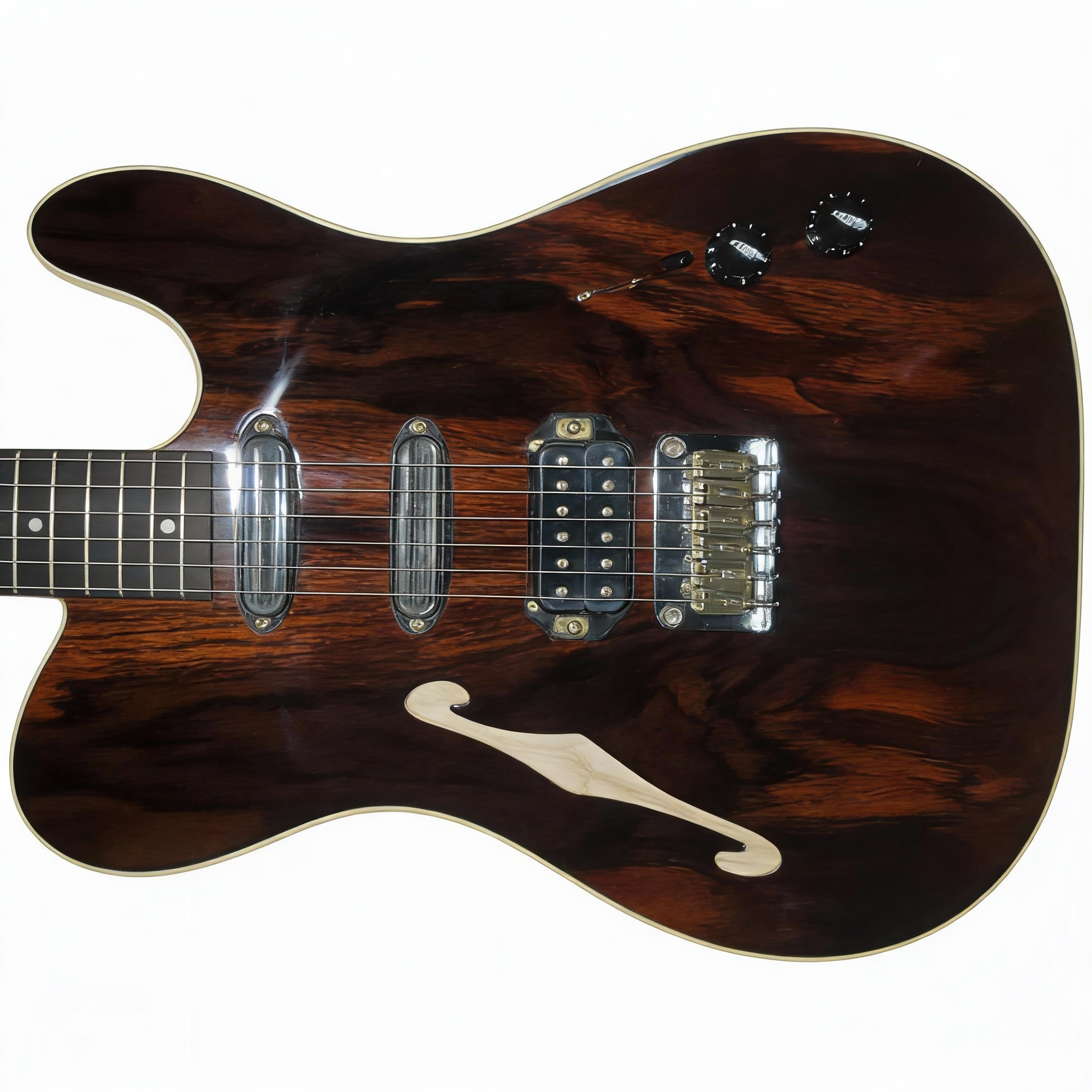 Semi-hollow construction reduces weight to approximately 6 lbs (2.7 kg), perfect for long sessions without fatigue while retaining solid sustain and feedback resistance.